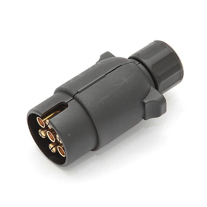 Трейлерные электрические разъемы предназначены для подключения цепи электрооборудования трейлера к электрической цепи буксирующего транспортного средства. Разъем имеет 7 контактов, которые смонтированы в пластмассовом брызгощазитном корпусе. Диаметр 37 мм, "папа".